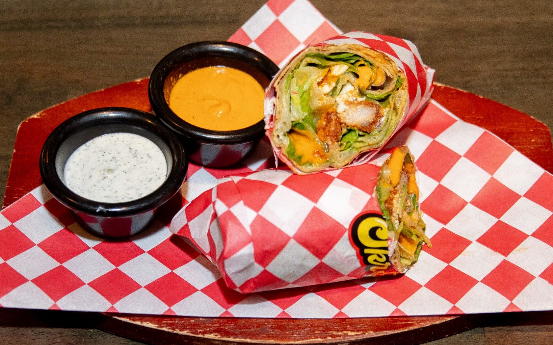 See clean shots of pizza, salads, wings, desserts.